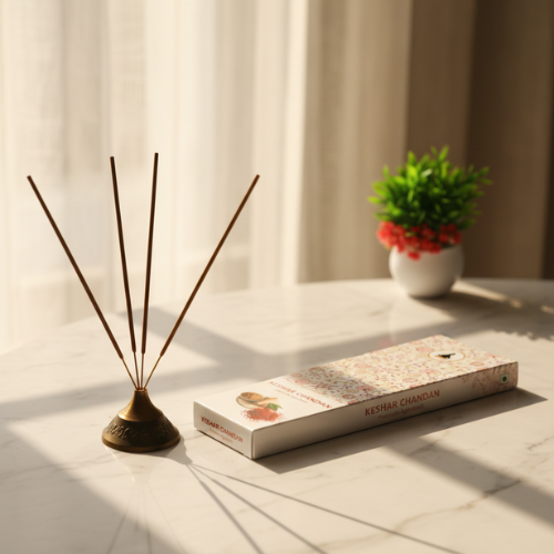 Keshar Chandan Premium Agarbatti offers a rich, calming aroma blending saffron and sandalwood. Ideal for पूजा, meditation, and relaxation, it creates a peaceful ambiance with long-lasting, soothing fragrance.