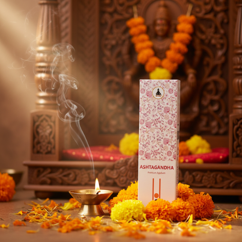 Ashtagandha Premium Agarbatti offers a divine, long-lasting fragrance that purifies your space and creates a peaceful spiritual atmosphere, perfect for daily पूजा, meditation, and special religious occasions.
