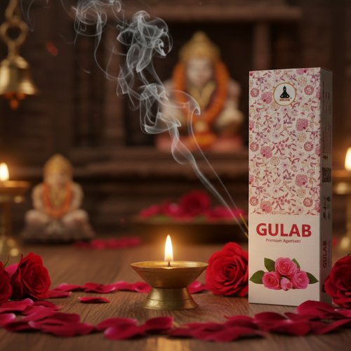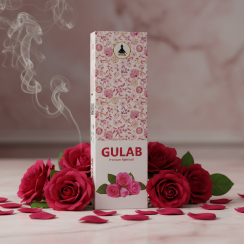 Gulab Premium Agarbatti spreads a soothing rose fragrance that refreshes your space. Crafted for long-lasting aroma, it creates a calm, spiritual atmosphere perfect for daily prayers and relaxation moments.